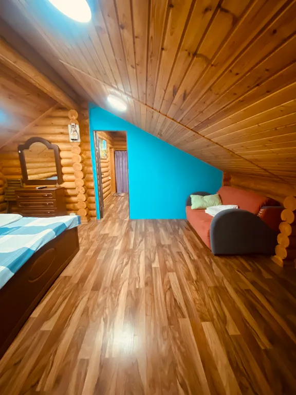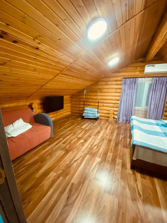 В доме 2 комнаты проходные на втором этаже, можем разместить до 6 гостей.