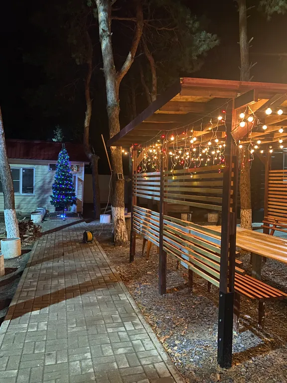 Мангальная зона под соснами.